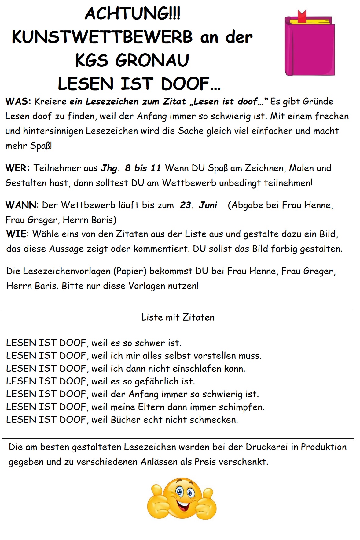 ACHTUNG!!! KUNSTWETTBEWERB an der KGS GRONAU