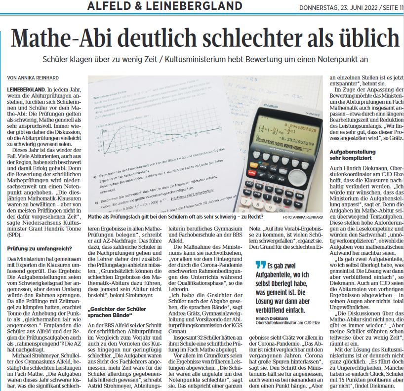 Alfelder Zeitung vom 23.06.2022 – Mathe Abi