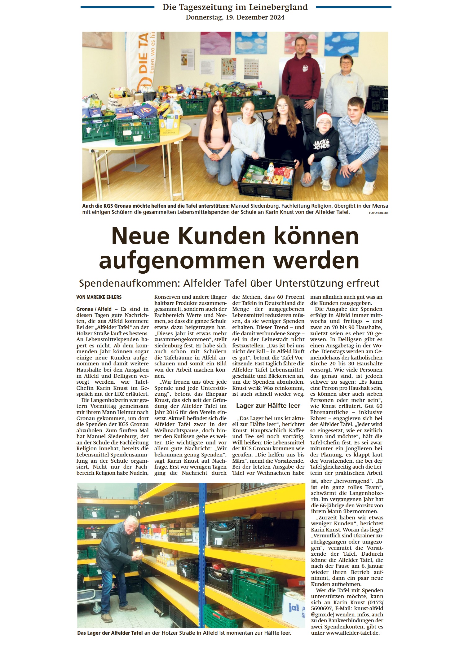 Artikel aus der Leine-Deister-Zeitung (Donnerstag, 19. Dezember 2024)