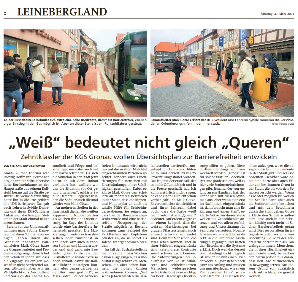 Barrierefreiheit – Bericht aus der LDZ vom 27.03.2021