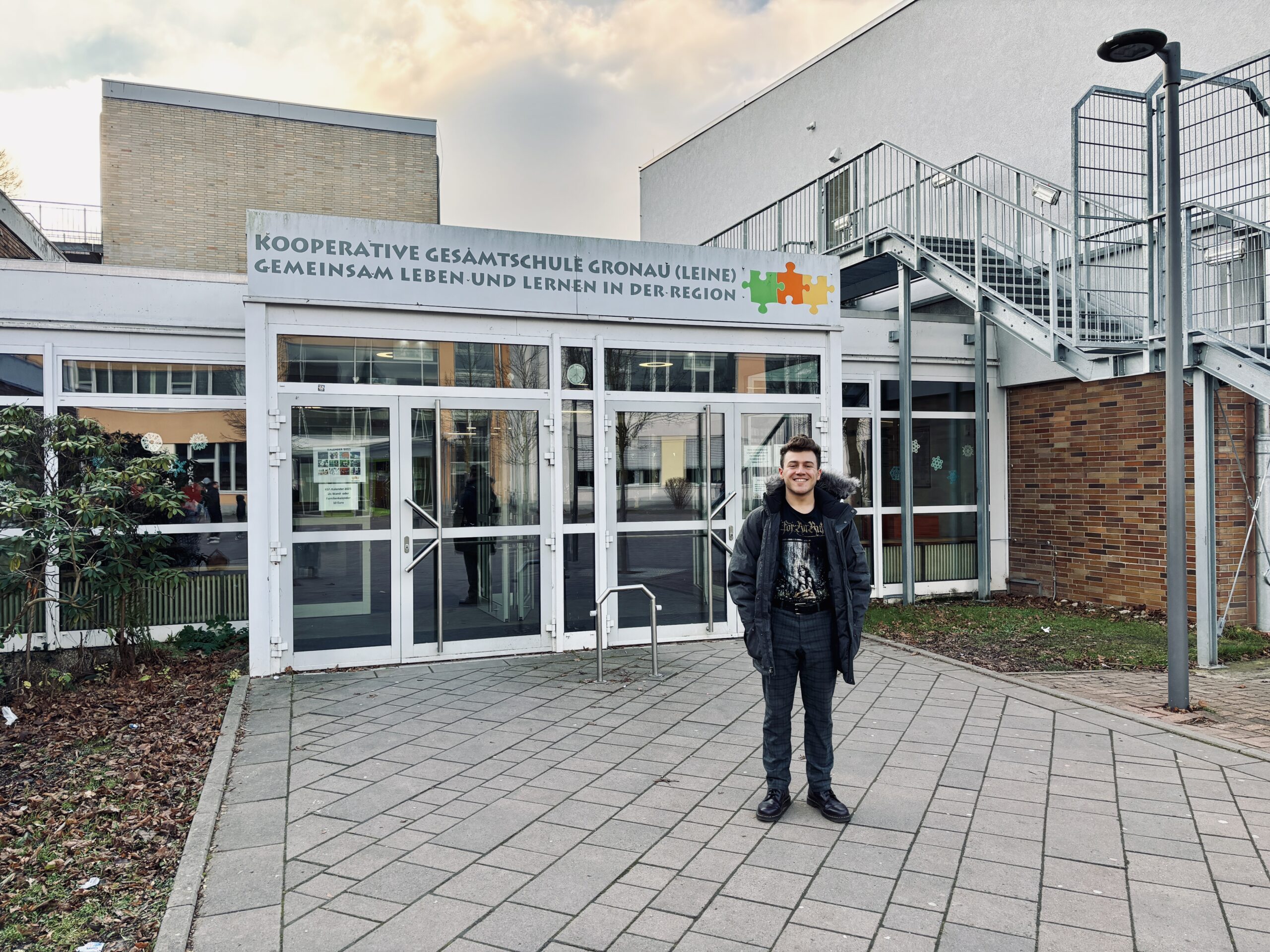 Im Rahmen des Austauschprogramms „Meet US“, das von der Botschaft und den Konsulaten der Vereinigten Staaten von Amerika in Deutschland initiiert wurde, besuchte Joshua Correia aus Massachusetts am 13. Dezember die KGS Gronau. Joshua kommt ursprünglich aus Amherst (Massachusetts) und ist derzeit im Rahmen des English Teaching Assistant Programs am Michael-Ende-Gymnasium in Tönisvorst in Nordrhein-Westfalen tätig. Dieses Programm wird von Fulbright Germany unterstützt, das sich der Förderung des transatlantischen Austauschs verschrieben hat.