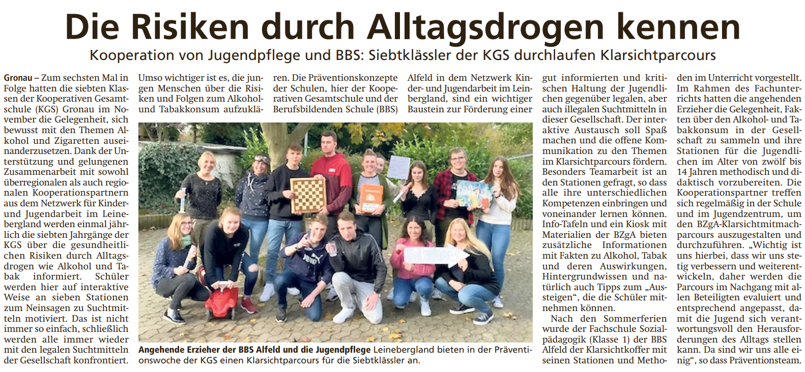 Die Risiken durch Alltagsdrogen kennen – Bericht aus der LDZ vom 18.11.2019