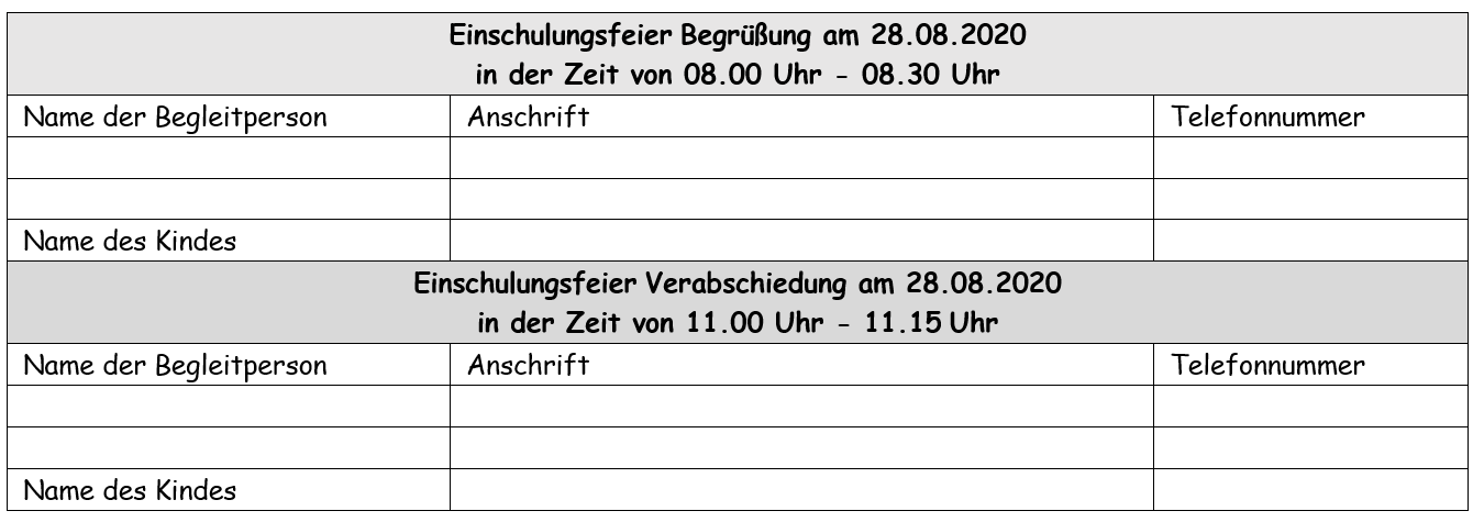 - Ihr Kind darf nur mit einer Begleitperson zur Einschulungsfeier kommen.
