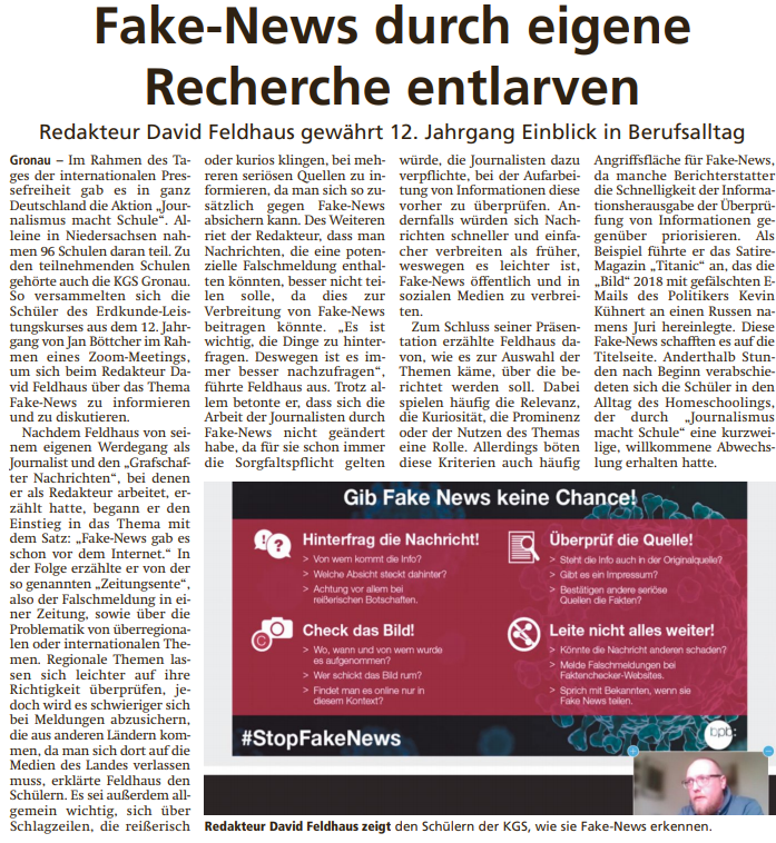 Fake-News erkennen – Bericht aus der LDZ vom 18.05.2021