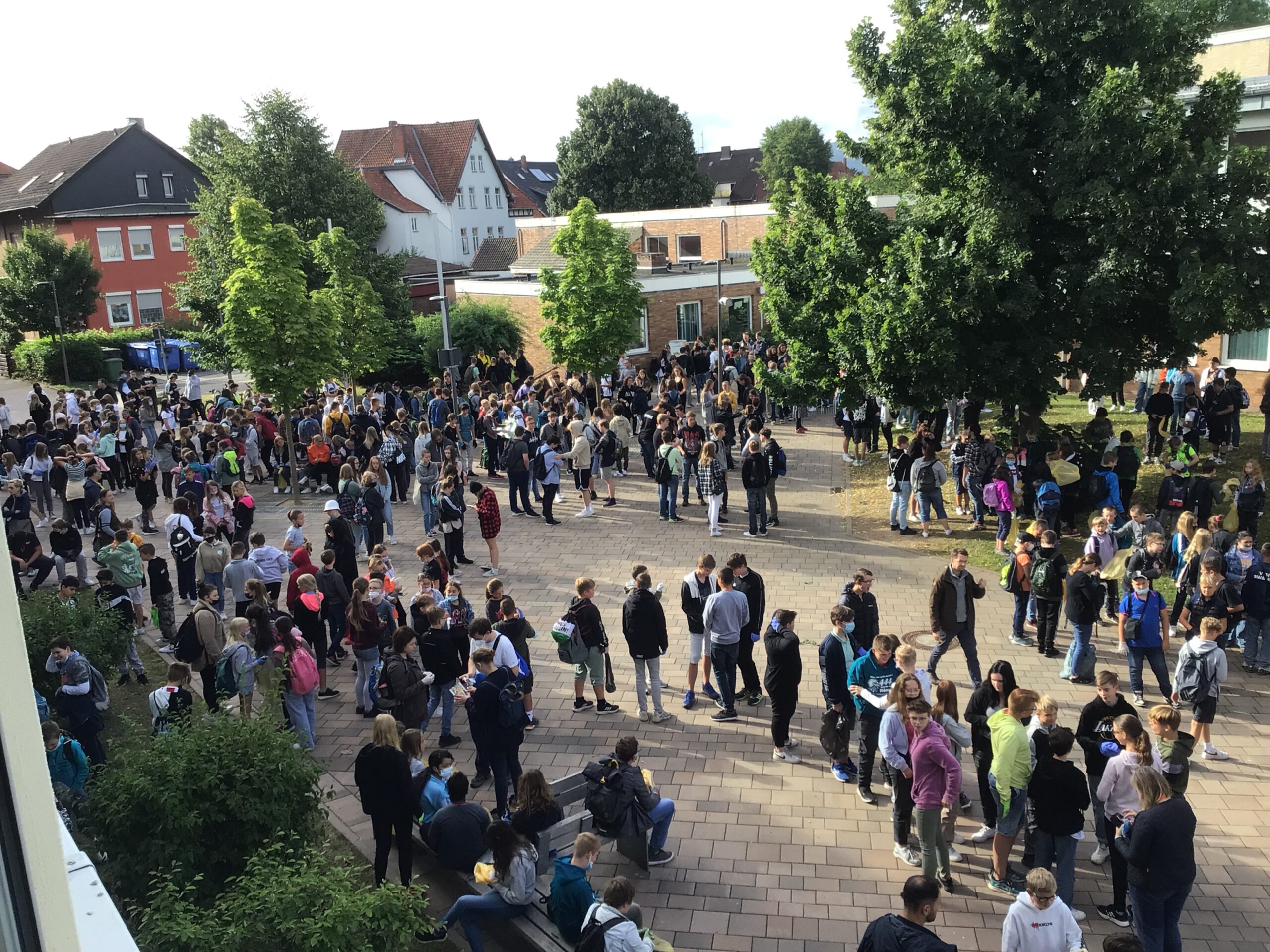 Am Dienstag, den 12.07.2022, wurde an der KGS der Umwelttag durchgeführt. An diesem Tag setzten sich die SchülerInnen mit der nachhaltigen Entwicklung, hier mit dem Schwerpunkt Müll und Entsorgung, auseinander. Ziel des Tages war es, den Müll zu sammeln, der uns allen täglich in unseren Wegen und Straßen begegnet sowie die Förderung für ein größeres Bewusstsein bei allen Beteiligten für einen sorgsameren Umgang mit Müll, seiner Entsorgung und unserer Umwelt. Der gesammelte Müll wurde anschließend auf dem Schulgelände gewogen und in einem Container entsorgt. Die drei Klassen, die am meisten Müll gesammelt haben, durften sich über tolle Preise freuen. Insgesamt haben 717 Schülerinnen und Schüler am Umwelttag 2022 teilgenommen. Zusammen sammelten sie 778,3kg Müll.