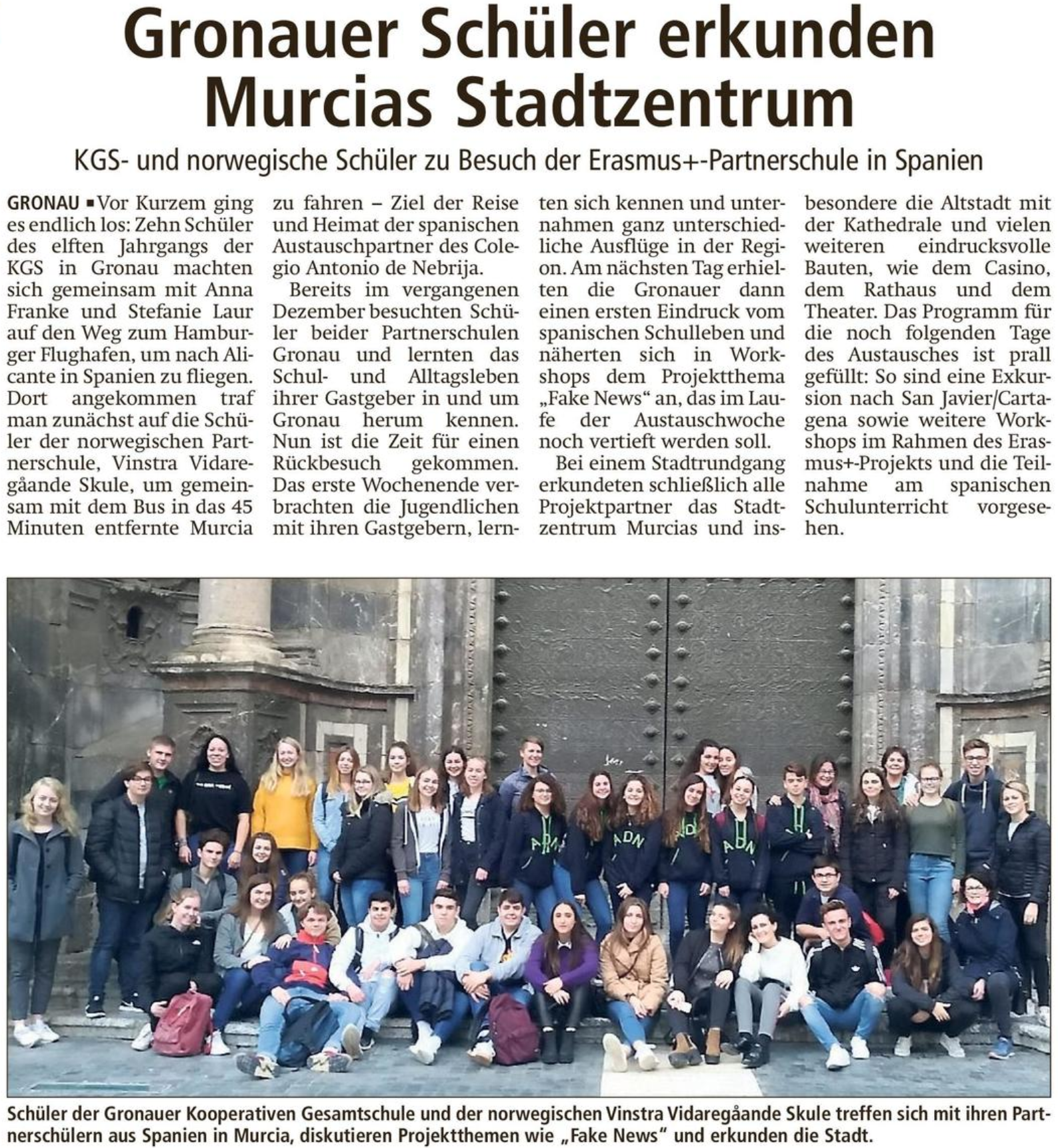 „Gronauer Schüler erkunden Murcias Stadtzentrum“ Bericht aus der LDZ