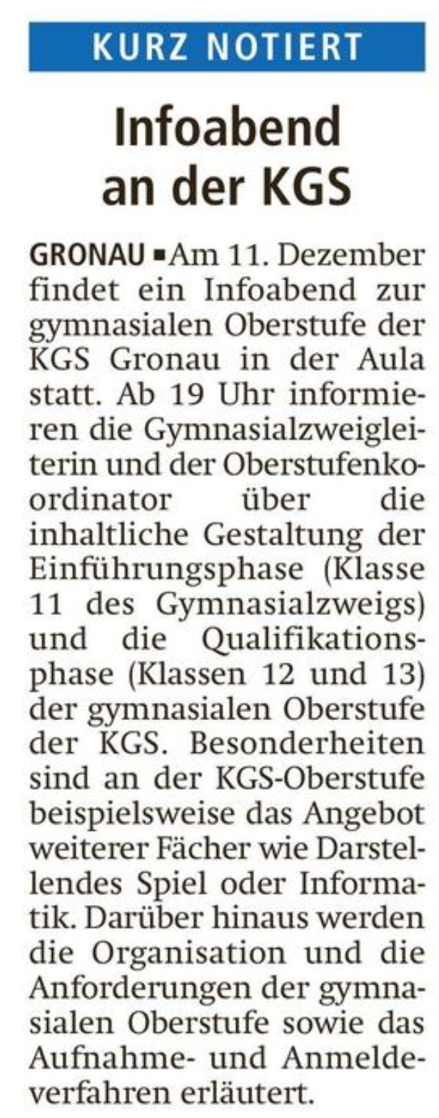 „Infoabend an der KGS“ Bericht aus der LDZ vom 07.12.2018