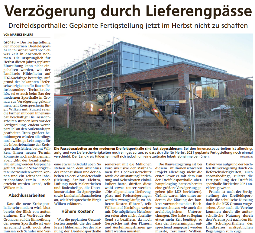 Neue Sporthalle – Bericht aus der LDZ vom 29.10.2021