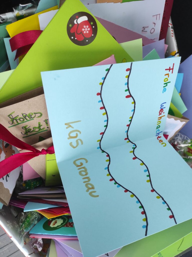 Die Kekse und 100 Karten wurden am 22. Dezember 2022 von Frau Wiechmann an das DRK Seniorenheim im Gronau übergeben. Hier hat man sich sehr gefreut, dass junge Schülerinnen und Schüler zu Weihnachten an die Senioren gedacht haben und ihnen ein Lächeln ins Gesicht zaubern wollten.