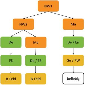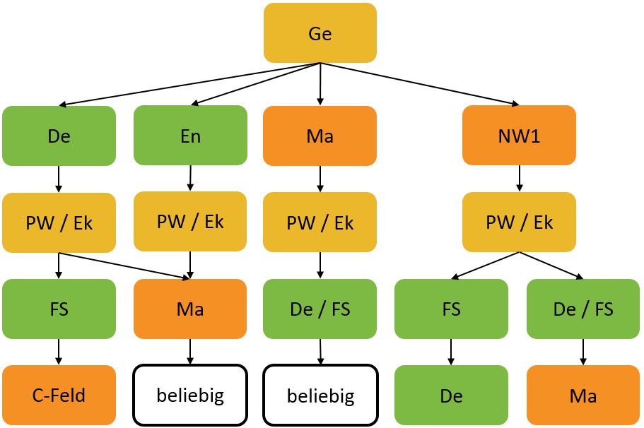 Jeder Schwerpunkt zeichnet sich durch unterschiedliche Kombinationsmöglichkeiten der fünf Prüfungsfächer aus.
