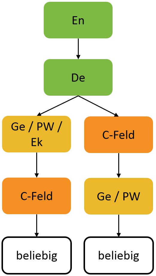 In den folgenden Abbildungen sind einige Beispiele für mögliche Kombinationen der Prüfungsfächer in den Schwerpunkten dargestellt.