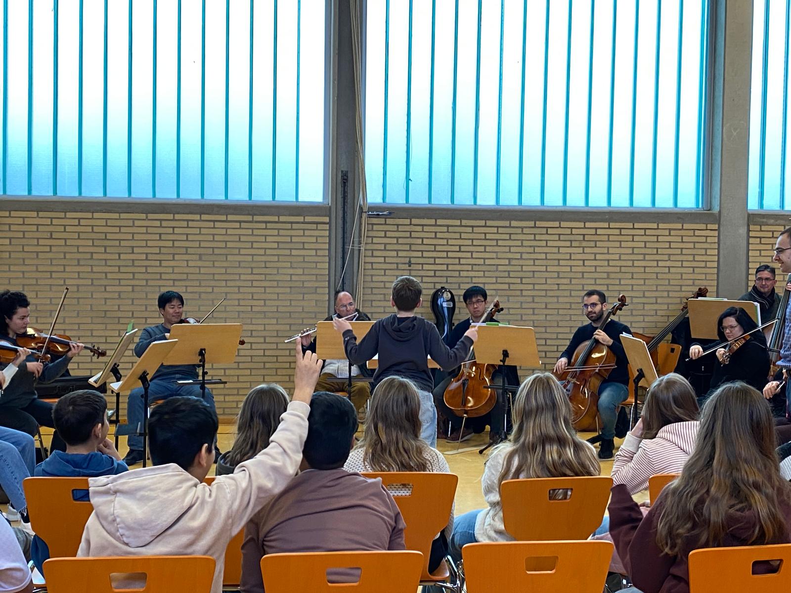 Ein Highlight des Besuchs war, dass die Schülerinnen und Schüler selbst die Möglichkeit hatten, in die Rolle des Dirigenten zu schlüpfen. Mit viel Enthusiasmus und Gestik versuchten sie, die Musiker zu leiten – ein unvergessliches Erlebnis, das viel Spaß und Einsicht in die Arbeit eines Dirigenten brachte. Musikalisch reichte das Repertoire der vorgestellten Werke von Komponisten wie Henry Purcell bis hin zu Wolfgang Amadeus Mozart. Die jungen Zuhörer lauschten aufmerksam und erfuhren spannende Hintergrundgeschichten über diese bedeutenden Musiker und ihre Werke.