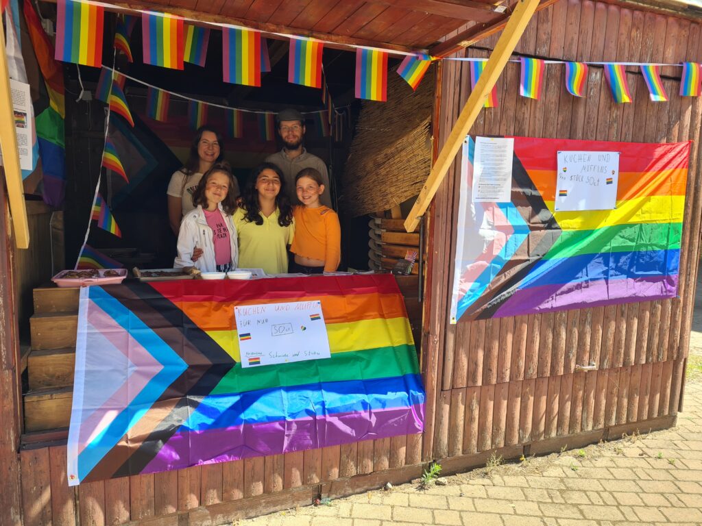 Regenbogenflaggen und -aufkleber, bunt gefärbte Kuchen und jede Menge Infomaterial zum Thema sexuelle Orientierung und geschlechtliche Identität: Damit präsentierte sich…