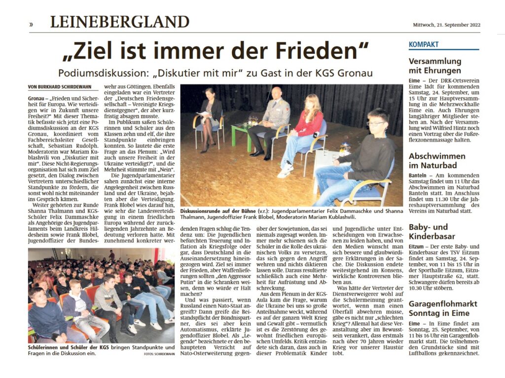Artikel aus der Leine-Deister-Zeitung (Mittwoch, 21. September 2022)