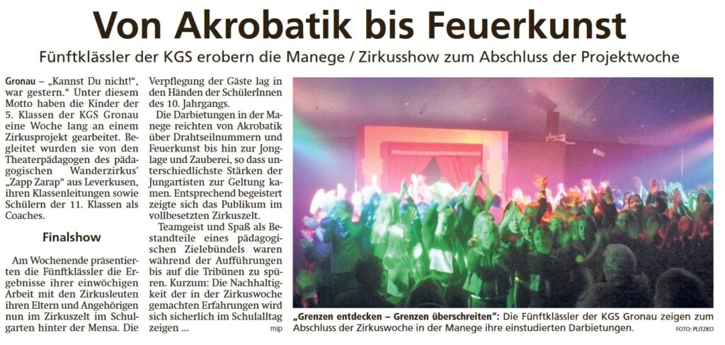 Vom 19.09.2022 bis zum 23.09.2022 veranstaltet die KGS Gronau mit Zirkuspädagog*innen eine Zirkusprojektwoche in der Schule. Für das Projekt wurde…