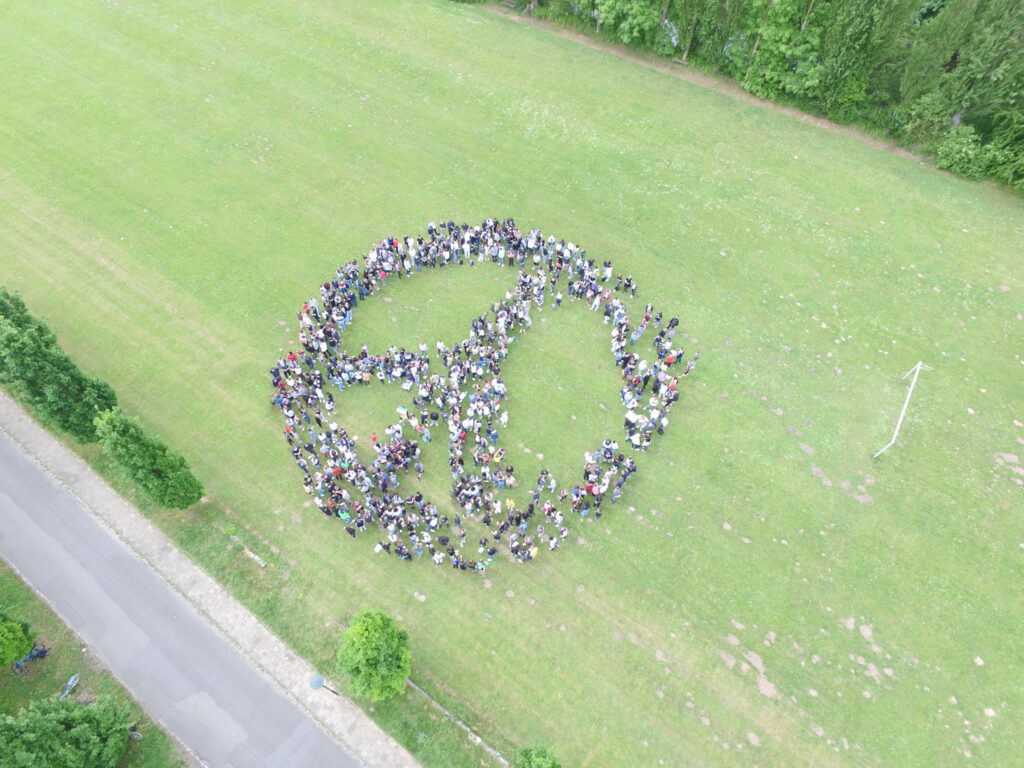 Am 23.05.22 versammelten sich mehr als 800 Schülerinnen und Schüler der KGS Gronau, um zusammen mit ihren Lehrkräften das „Peace“-Symbol…