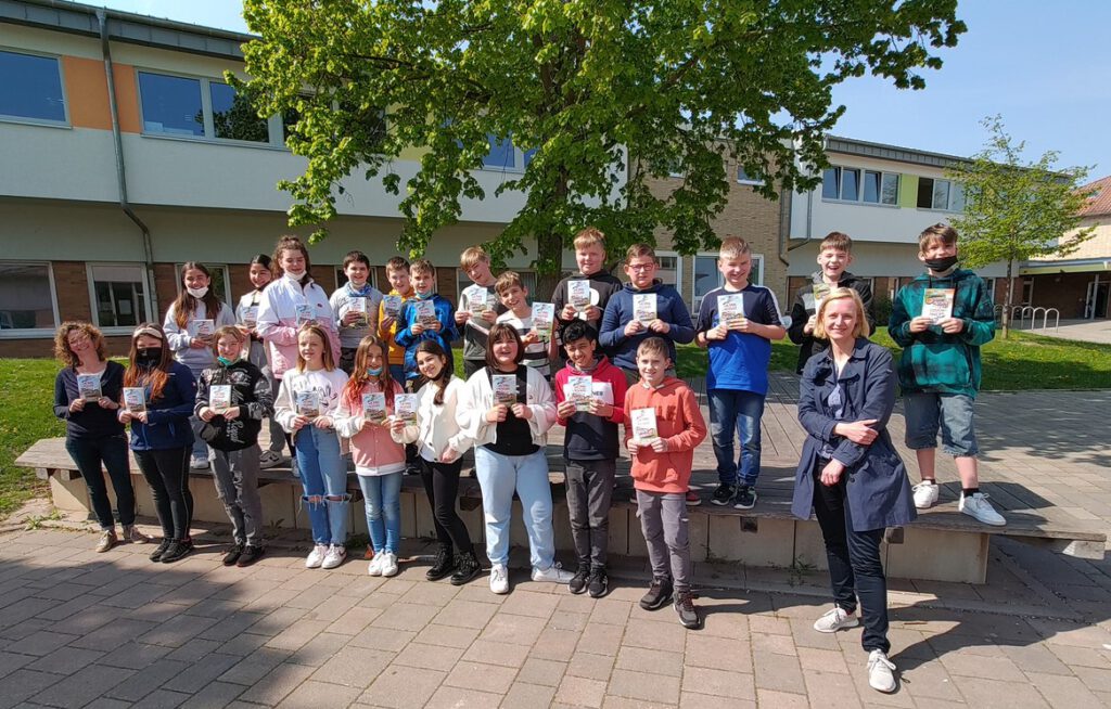 Der 5. Jahrgang freut sich über das neue Buch! 140 SchülerInnen des 5. Jahrgangs haben das Buch „Iva, Samo und…