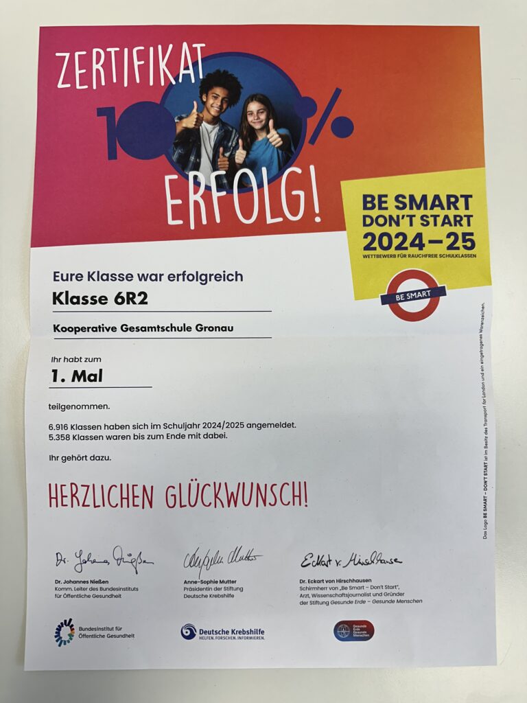 Die Klasse 7R2 hat im letzten Schuljahr erfolgreich am Wettbewerb „be smart“ teilgenommen. Auch in diesem Schuljahr nimmt die Klasse…
