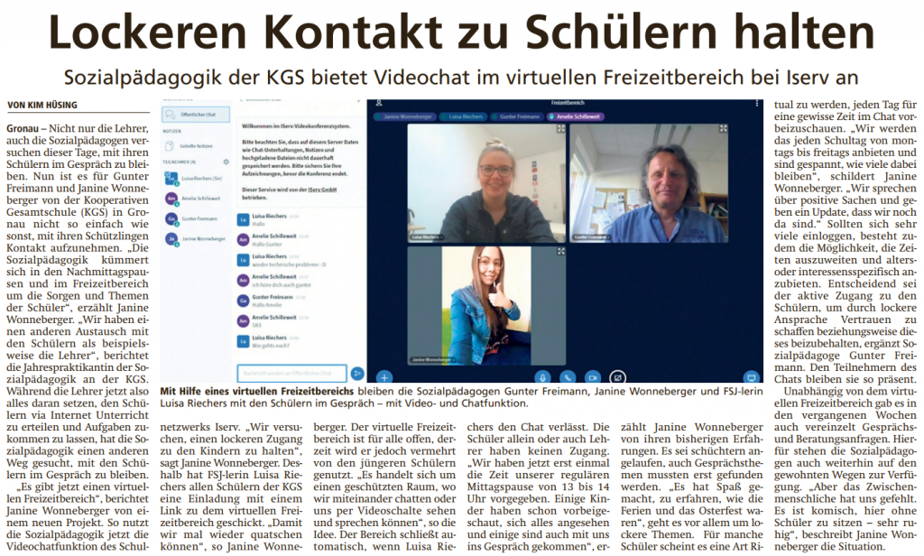 Anmeldeverfahren für Jahrgang 5 – Bericht aus der LDZ vom 24.04.2020