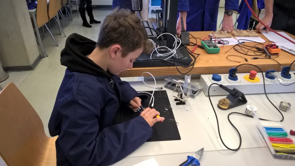Wir wurden vom Institut für Technik eingeladen, eine neue für Schülerinnen und Schüler angeschaffte Werkstatt und neue Unterrichtsprojekte zu erproben. Die Werkstatt ist mobil und soll zukünftig als „Schülerwanderwerkstatt“ projektartig zu Schulen fahren. Bis dahin ist es noch ein weiter Weg. Die Schülerinnen und Schüler des Profils Technik waren die ersten, die diese Werkstatt genutzt haben.