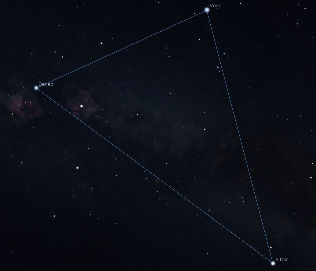 Die Sterne sind Deneb, Wega und Altair.