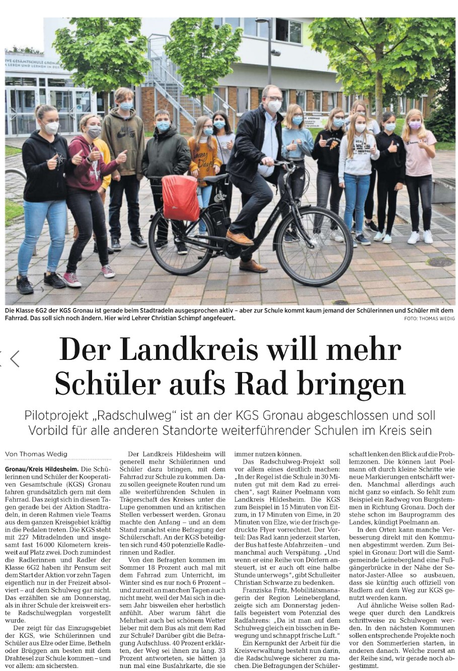 Schulradwegeplan – Bericht aus der HAZ vom 28.05.2021