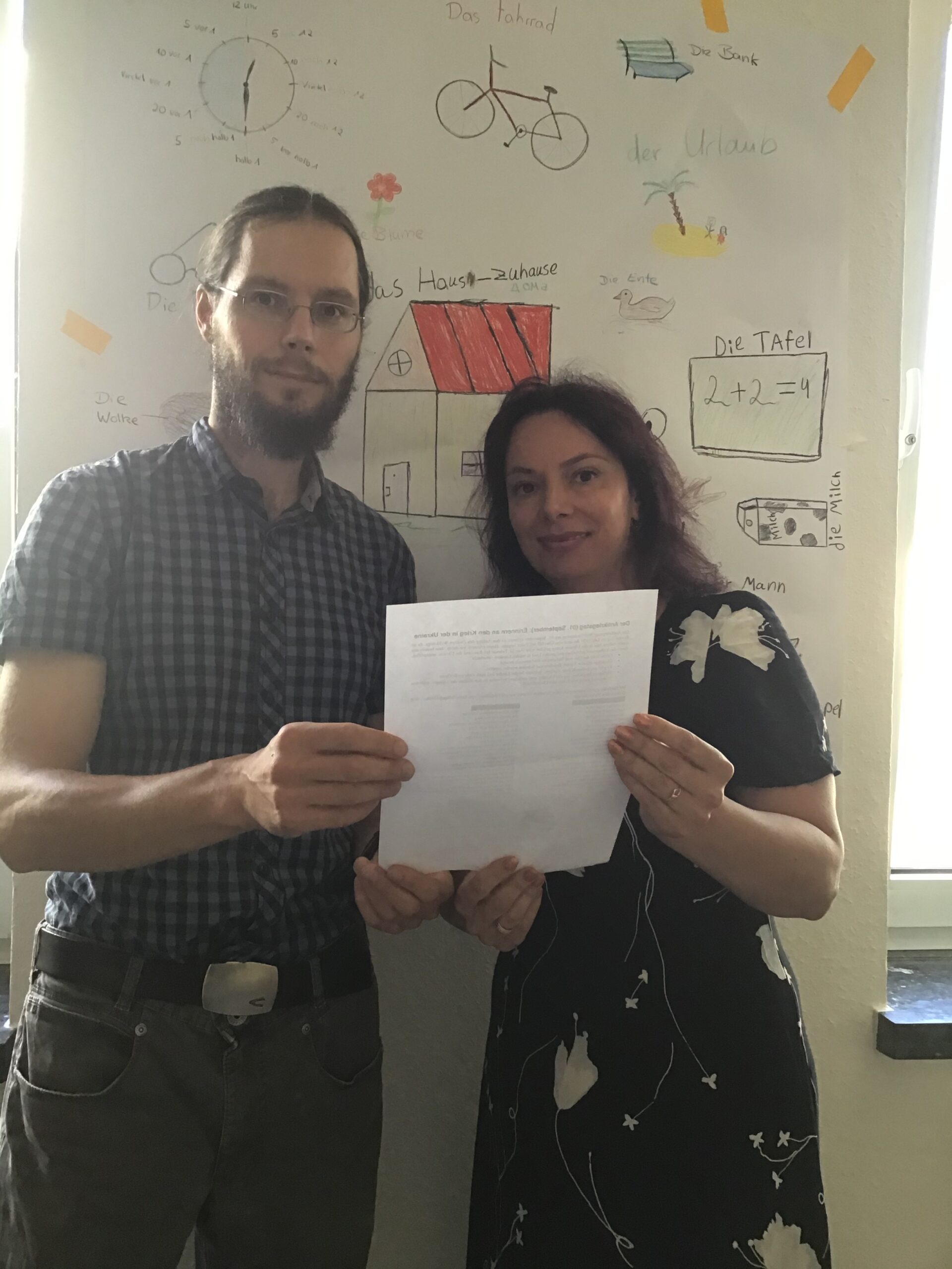 Mit einer Schweigeminute haben Schülerinnen und Schüler sowie Lehrkräfte der KGS Gronau am 01. September den Unterrichtstag begonnen. Das Datum lieferte hierfür gleich einen doppelten Anlass: Seit vielen Jahren ist der 01. September der Antikriegs- oder Weltfriedenstag, da an diesem Tag mit dem deutschen Überfall auf Polen der Zweite Weltkrieg begann. Hinzu kam, dass nunmehr seit einem halben Jahr, nämlich seit dem 24. Februar, Krieg in der Ukraine geführt wird. Auch die KGS Gronau ist indirekt davon betroffen, da mehrere Flüchtlingskinder hier unterrichtet werden. Der Schweigeminute ging eine kurze Erinnerung an den russischen Angriff auf die Ukraine und vor allem an die vielen Todesopfer und Flüchtlinge voran. Anschließend zitierten die Lehrkräfte Yuliia Zapolska und Jonathan Kühnel Verse aus Gedichten des ukrainischen Nationaldichters Taras Schewtschenko – zuerst im ukrainischen Original und anschließend in deutscher Übersetzung. Schewtschenko machte bereits im 19. Jahrhundert auf die Gefahren eines Kriegs aufmerksam, wenn er etwa schrieb: „Doch einer reicht, um dies [nämlich den Frieden] zu zerstören, schaut er mit gierigem Blick über den Rand seiner Welt.“ Die folgende Schweigeminute konnte für das individuelle Gedenken an die Folgen des Krieges genutzt werden. Zahlreiche Lehrkräfte griffen das Gedenken zudem auf, um in ihren jeweiligen Klassen den Ukrainekrieg in kindgerechter Weise zu thematisieren.