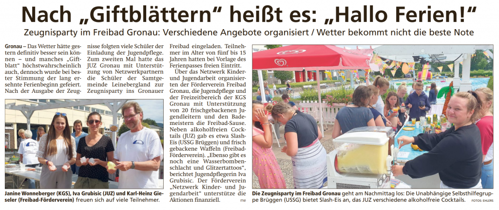 Zeugnisparty – Bericht aus der LDZ vom 04.07.2019