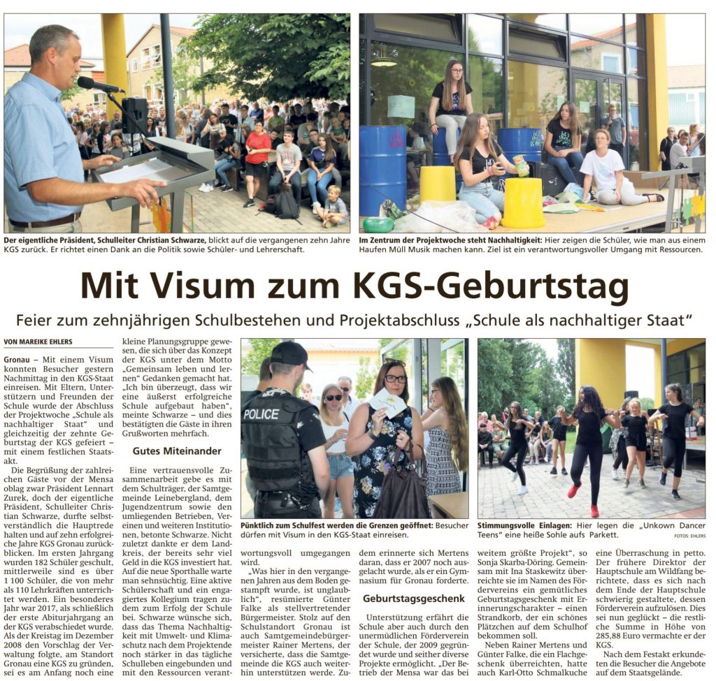 LDZ vom 22.06.2019 zum Jubiläum und Projektwoche