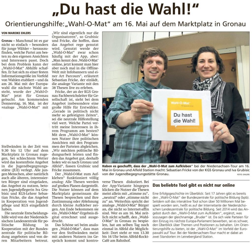 Der Wahl-O-Mat in Gronau, Bericht aus der LDZ vom 10.05.2019