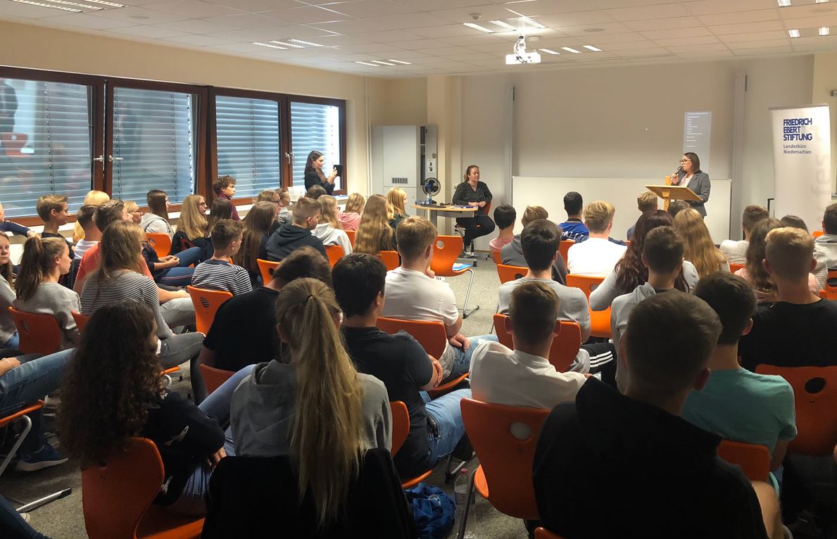 Zur Begleitung der aktuellen politischen Diskussion um sichere Herkunftsländer, Rückführungen und Abschiebungen hat die KGS Gronau in Kooperation mit dem Landesbüro der Friedrich-Ebert-Stiftung aus Hannover einen Thementag „Afghanistan“ initiiert. Dabei wurde den Schülerinnen und Schülern zunächst der Film „Return to Afghanistan“ des jungen afghanischen Regisseurs und Absolventen des FES Young Leaders Forums Mohammad Mehdi Zafari gezeigt. Dieser Film wurde produziert von unserem Gast Mirco Günther und widmet sich dem Themenschwerpunkt Rückkehrer. „Return to Afghanistan“ erzählt die Geschichten von sieben Geflüchteten, die nach Afghanistan zurückkehren. Ihre Fluchtwege reichen über Generationen. Sie kommen aus Deutschland, Pakistan und dem Iran. Einige kehren freiwillig zurück, andere wurden abgeschoben. Einige wollen helfen, ihr Land wieder aufzubauen, andere sehen für sich keine Zukunft in einer Situation geprägt von Konflikten und Gewalt. Gefilmt in Afghanistan im Sommer 2017, beleuchtet diese Dokumentation die Motive und Umstände von Rückkehrern. Warum haben sie sich für diesen Weg entschieden? Was waren die Umstände ihrer Abschiebung? Mit welchen Realitäten sind sie konfrontiert, zurück in einem Land, das sie gehofft hatten, für ein besseres Leben zu verlassen? Was sind ihre Wünsche und Pläne für die Zukunft?