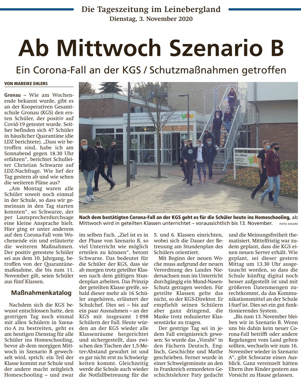 Wechsel ins Szenario B – LDZ vom 03.11.2020